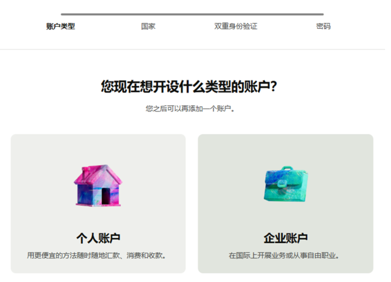 2.然后需要选择开户类型,选择个人类型