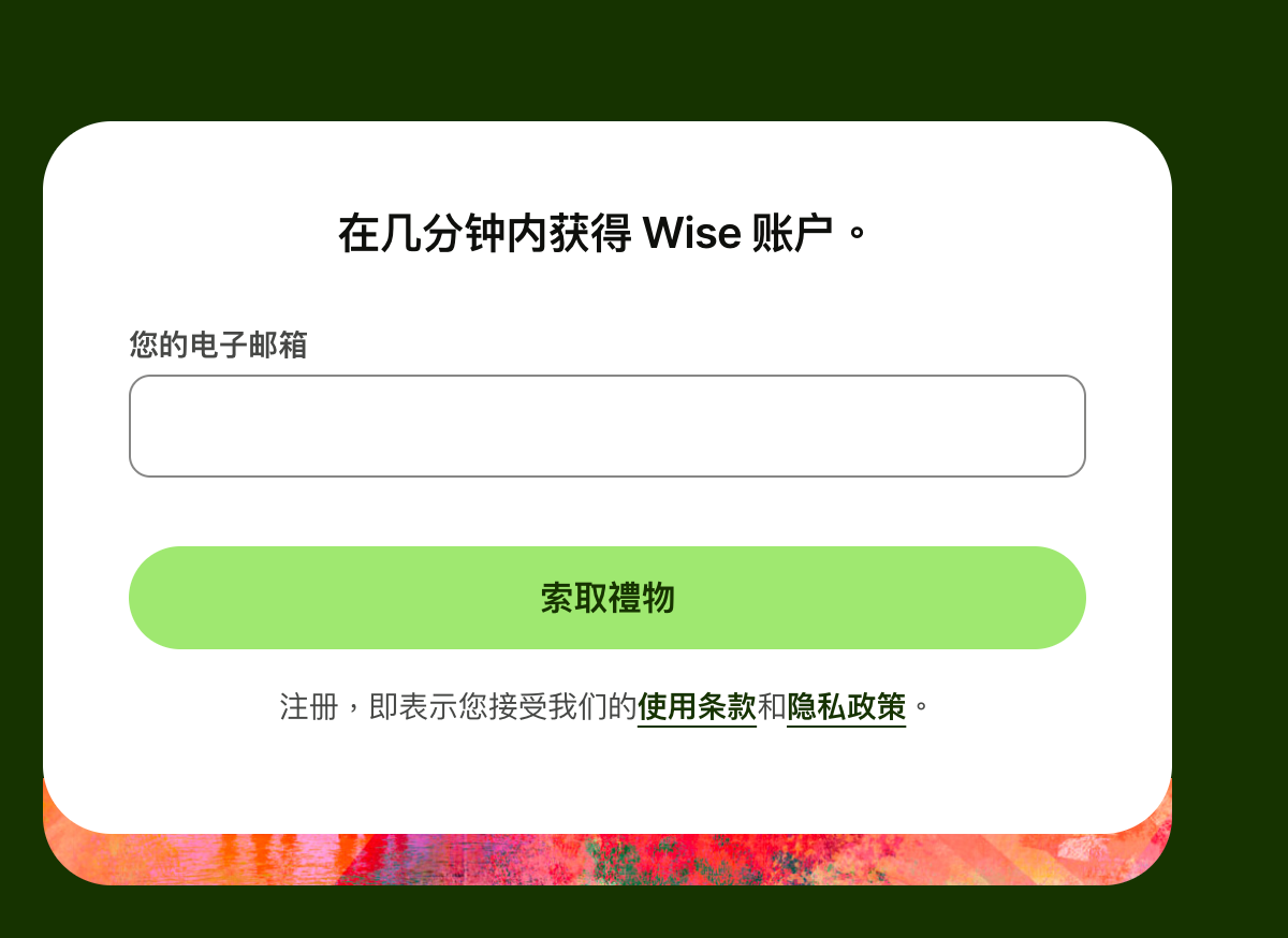 1.注册Wise ,点击之后打开网页,填入你的邮箱