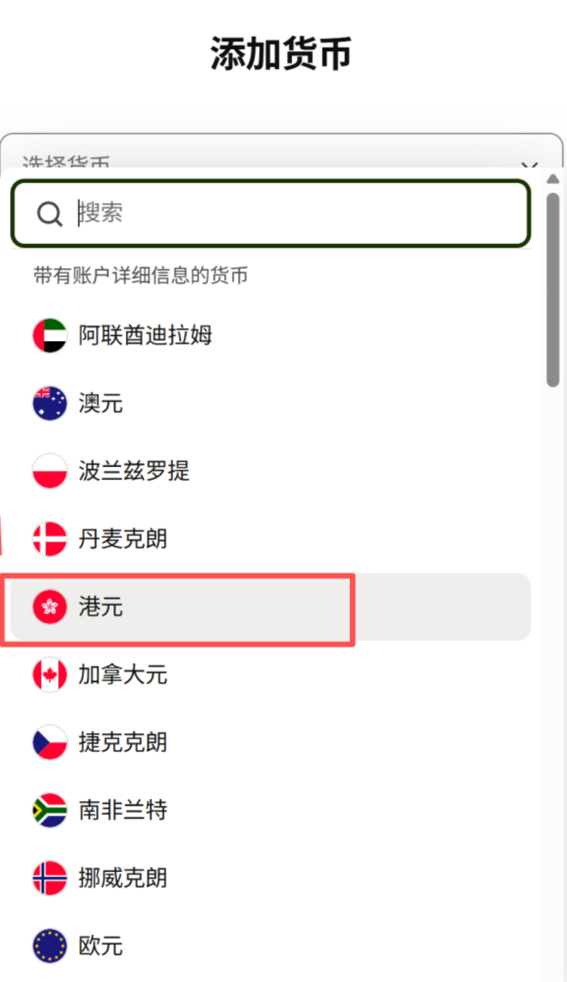 币种选择 港元(HKD)
